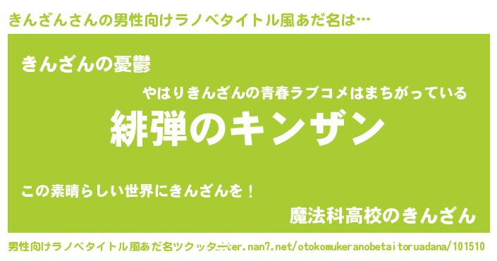 | 胡散臭い通販商品みたいなあだ名 | 『必ず成功する霊験あらたかなお札…その名も「きんざん」』 |