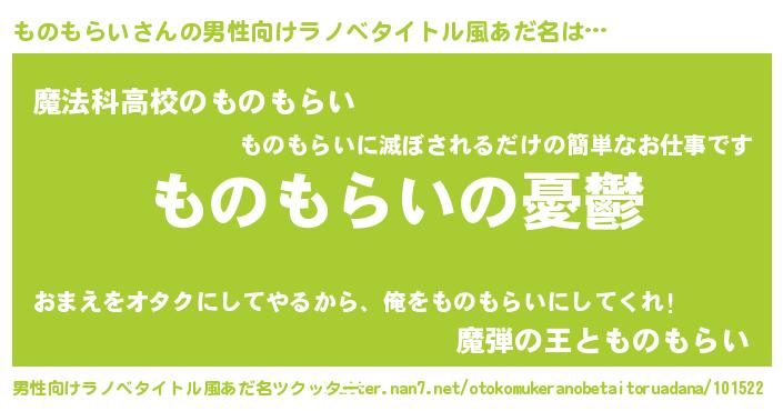 | 胡散臭い通販商品みたいなあだ名 | 『モテモテ間違いなしブレスレット…その名も「ものもらい」』 |