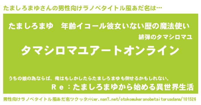 | 胡散臭い通販商品みたいなあだ名 | 『億万長者になれる水晶球…その名も「たましろまゆ」』 |