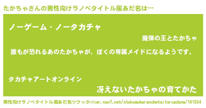 | 女子向けラノベタイトル風あだ名 | 『異世界でカフェたかちゃを開店しました。』 |