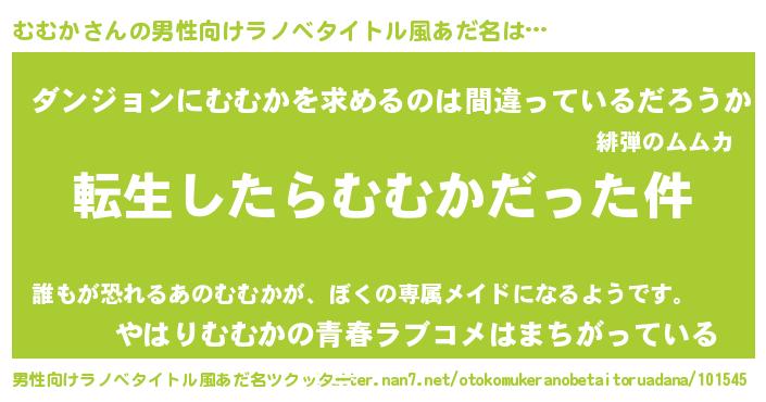 | ヘコむあだ名 | 『むむを』『豆乳』『むむか(爆)』 |