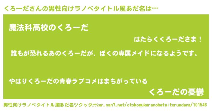 くろーださんの男性向けラノベタイトル風あだ名をツクッター!
