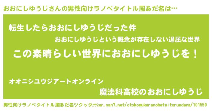 | ヒーロー風カッコイイあだ名 | 『仮面オオダー』『ネオオオニシユウジ』 |