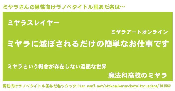 | ヒーロー風カッコイイあだ名 | 『最強戦士ミヤラ』『スーパーミヤラ』 |