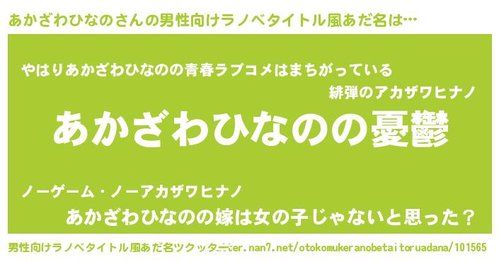 あかざわひなのさんの男性向けラノベタイトル風あだ名をツクッター!