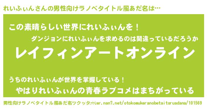 | 胡散臭い通販商品みたいなあだ名 | 『億万長者になれるブレスレット…その名も「れいふぃん」』 |