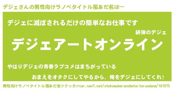 | 女子向けラノベタイトル風あだ名 | 『誰かこのデジェを説明してください! ~契約から始まるウェディング~』 |