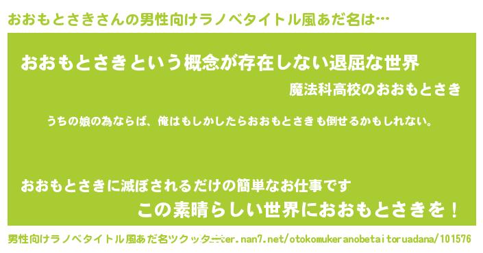 | 女子向けラノベタイトル風あだ名 | 『おおもとさきの婚約者』 |