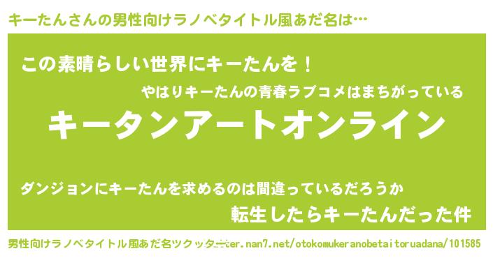 | 女子向けラノベタイトル風あだ名 | 『誰かこのキーたんを説明してください! ~契約から始まるウェディング~』 |