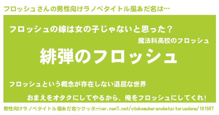 | 胡散臭い通販商品みたいなあだ名 | 『信頼と実績のネックレス…その名も「フロッシュ」』 |