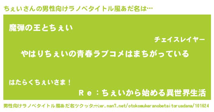 | 胡散臭い通販商品みたいなあだ名 | 『世界が平和になる高級そうな皿…その名も「ちぇい」』 |