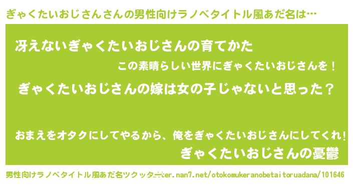| 女子向けラノベタイトル風あだ名 | 『ぎゃくたいおじさん様がみてる』 |
