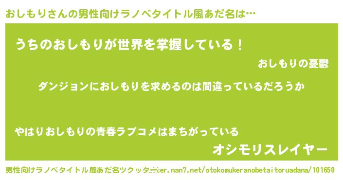 | 女子向けラノベタイトル風あだ名 | 『おしもりは平凡を望む』 |
