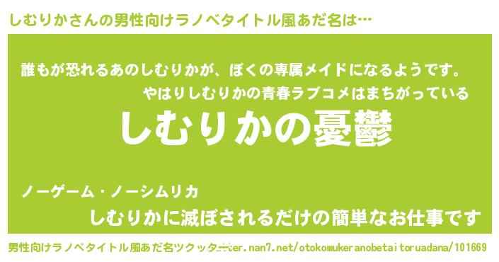 | 胡散臭い通販商品みたいなあだ名 | 『必ず成功する水晶球…その名も「しむりか」』 |