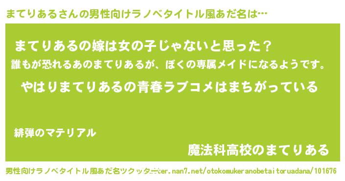 | 女子向けラノベタイトル風あだ名 | 『まてりあるの雑貨屋さん』 |