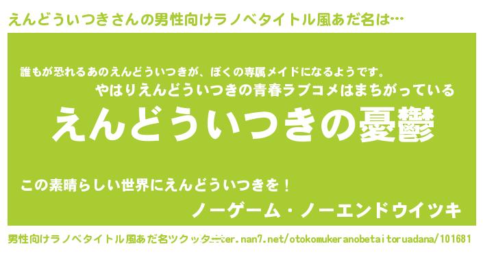 | 女子向けラノベタイトル風あだ名 | 『えんどういつき姫と円卓の騎士』 |