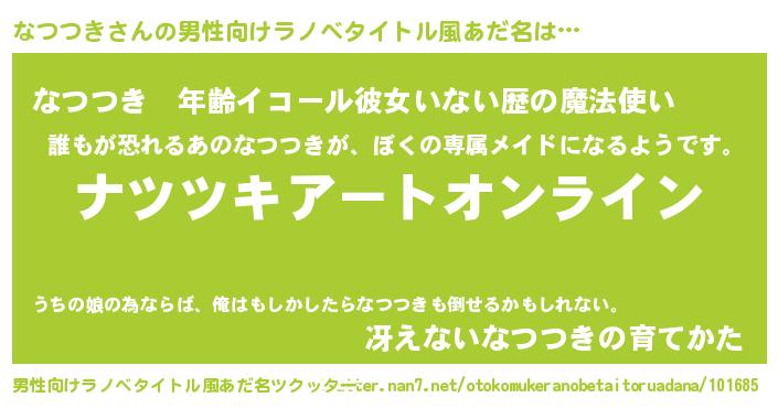 | 胡散臭い通販商品みたいなあだ名 | 『億万長者になれるブレスレット…その名も「なつつき」』 |