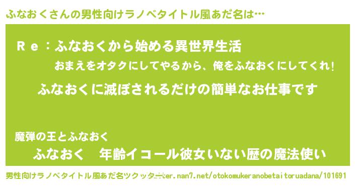 | ヘコむあだ名 | 『ふなにゅー』『ふなっちょ』 |