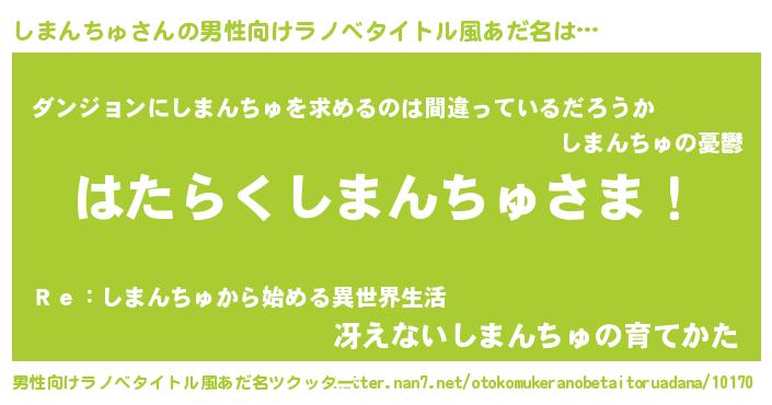 | 胡散臭い通販商品みたいなあだ名 | 『信頼と実績のペンダント…その名も「しまんちゅ」』 |