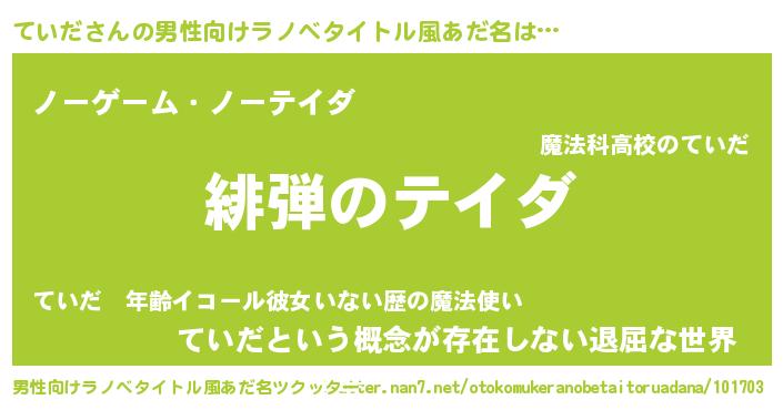 | ヘコむあだ名 | 『ていだ(爆)』『ていにー』 |