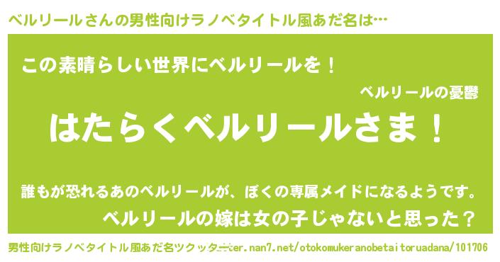 | 女子向けラノベタイトル風あだ名 | 『首の姫と首なしベルリール』 |