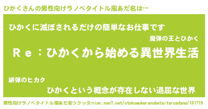 | ヘコむあだ名 | 『ひかく(苦笑)』『ひかにー』 |