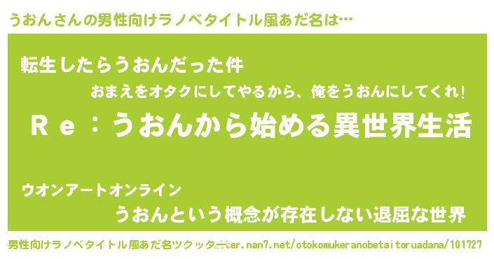 | 意味不明あだ名 | 『自称うおん』『なめこ科うおん属』 |