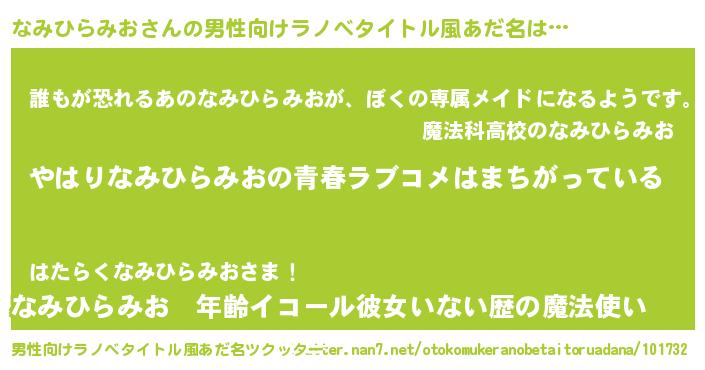 | ファンタジー風あだ名 | 『エターナルナミヒラミオー』 |