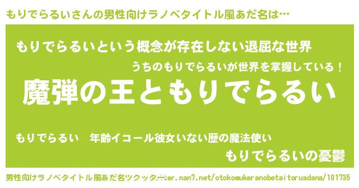 | 意味不明あだ名 | 『住所不定無職もりでらるい(77歳)』 |