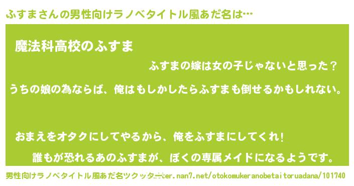 | ヒーロー風カッコイイあだ名 | 『ウルトラふすまマン』『ネオフスマ』 |