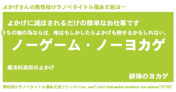 | ヒーロー風カッコイイあだ名 | 『天空の使者よかげ』『炎刃騎士ヨカ』 |