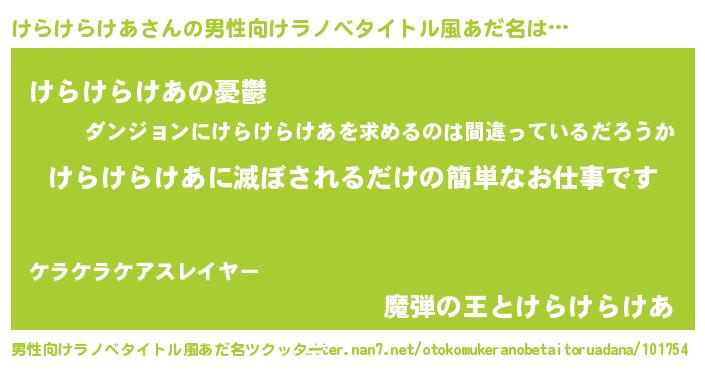 | ヒーロー風カッコイイあだ名 | 『スーパーケラケラケア』『仮面ケラダー』 |