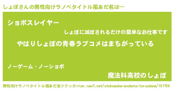 | ヒーロー風カッコイイあだ名 | 『ウルトラしょぼマン』『魔戒騎士ショ』 |
