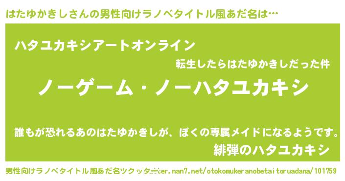 | ファンタジー風あだ名 | 『クインハット』『ハタフェル』 |