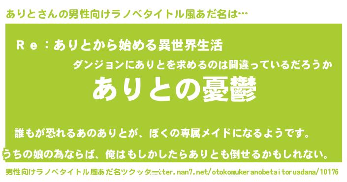 | 胡散臭い通販商品みたいなあだ名 | 『モテモテ間違いなし霊験あらたかなお札…その名も「ありと」』 |