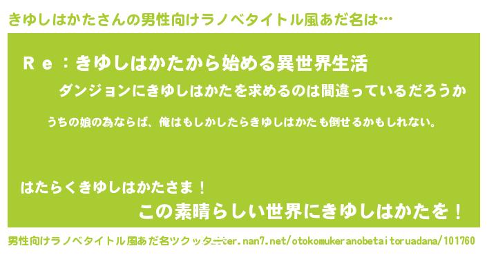 | 胡散臭い通販商品みたいなあだ名 | 『運命の人と巡り会える高級そうな壺…その名も「きゆしはかた」』 |