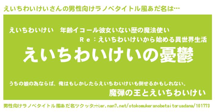 | 女子向けラノベタイトル風あだ名 | 『えいちわいけい姫と円卓の騎士』 |