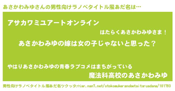 | 意味不明あだ名 | 『とにかく怪しいあさかわみゆ』 |
