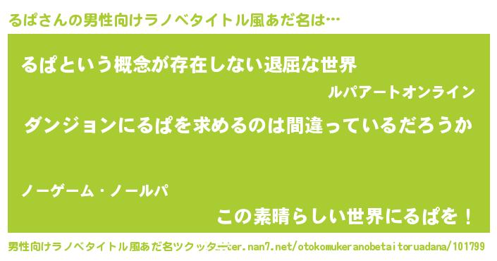 | 女子向けラノベタイトル風あだ名 | 『るぱは平凡を望む』『るぱ恋絵巻』 |