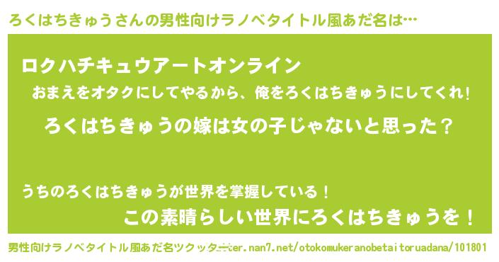 | 女子向けラノベタイトル風あだ名 | 『ろくはちきゅう様がみてる』 |