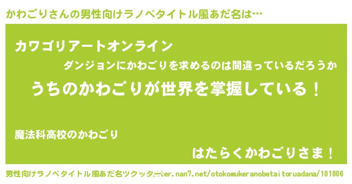 | 胡散臭い通販商品みたいなあだ名 | 『億万長者になれるブレスレット…その名も「かわごり」』 |