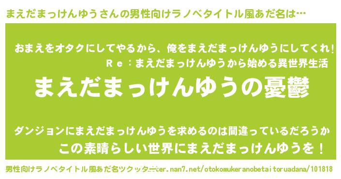 | ヒーロー風カッコイイあだ名 | 『スーパーマエダマッケンユウ』 |
