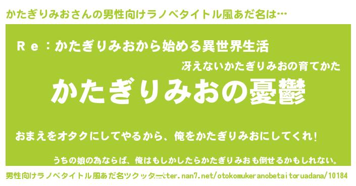 | 女子向けラノベタイトル風あだ名 | 『(仮)かたぎりみおのやんごとなき事情』 |