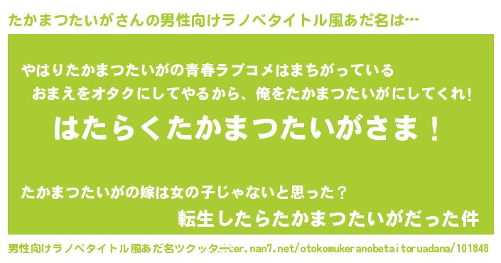 | 意味不明あだ名 | 『たかまつたいがフォーエバー』 |