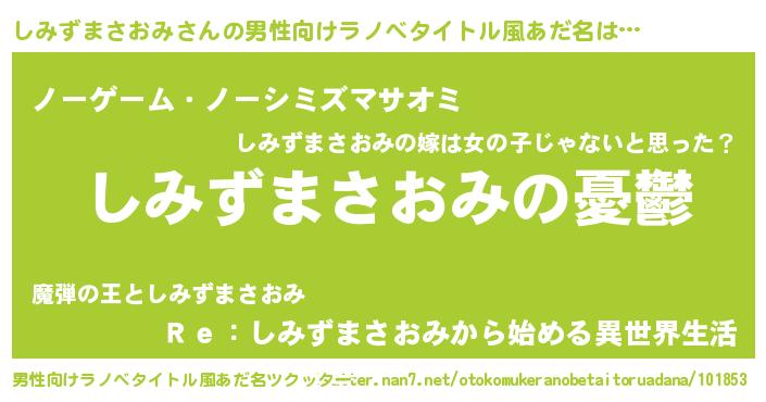 | 女子向けラノベタイトル風あだ名 | 『(仮)しみずまさおみのやんごとなき事情』 |