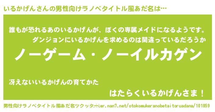 | ヒーロー風カッコイイあだ名 | 『慈愛の使者いるかげん』『魔戒騎士イル』 |