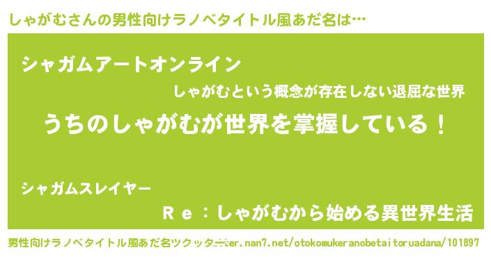 | ヘコむあだ名 | 『しゃにー』『しゃがむ(笑)』 |
