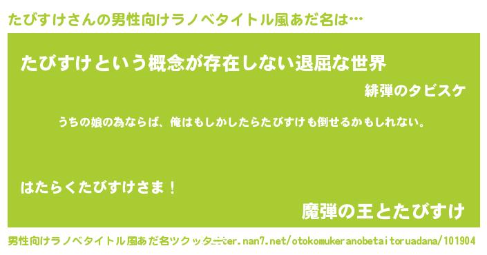 | 女子向けラノベタイトル風あだ名 | 『たびすけの婚約者』 |