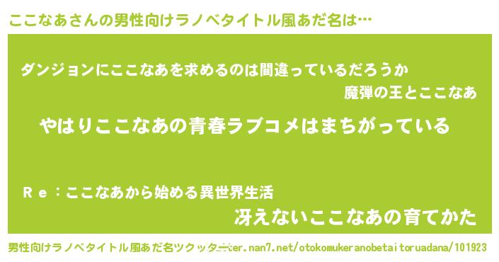 | 女子向けラノベタイトル風あだ名 | 『ここなあの雑貨屋さん』 |