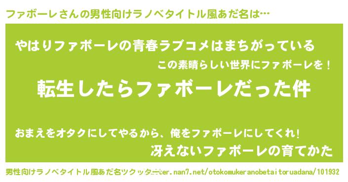 | 胡散臭い通販商品みたいなあだ名 | 『世界が平和になる高級そうな絵画…その名も「ファボーレ」』 |
